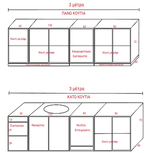 Δεν περιλαμβάνεται ο πάγκος της κουζίνας.